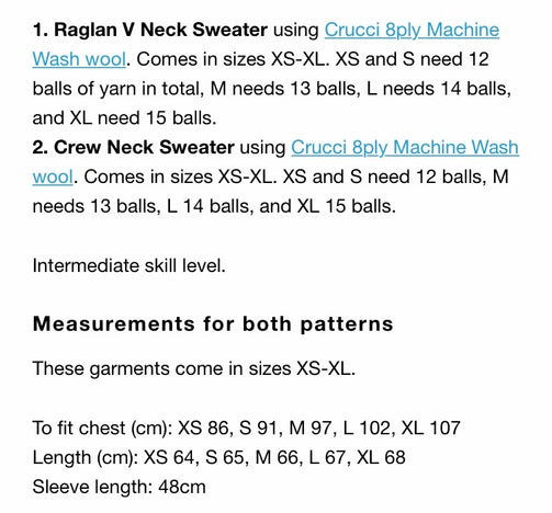 1843 Crucci Men’s 8Ply Raglan and Crew Neck Sweater Patterns