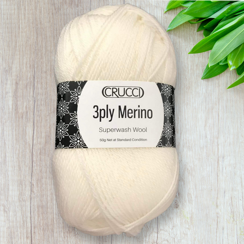 Crucci 3Ply Merino Pure Wool Super Wash.
