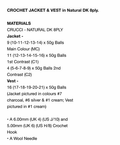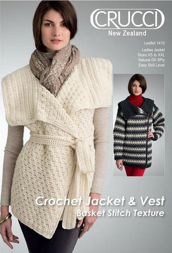 Crochet Jacket & Vest Basket Stitch Texture 8Ply Pattern