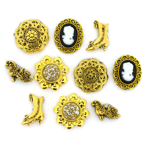 Embellishments for adding dimensions to all of your scrapbook pages, cards, invitations and craft projects. Embellishments come in a variety of shapes and sizes, with some even featuring glitter. Size, shape and number of embellishments per package varies by theme.