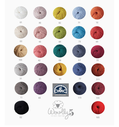 WOOLLY 5 is another high quality 100% Australian merino wool from DMC. Exceptionally soft, WOOLLY 5 is comfortable in both warm and cool temperatures and perfect for all of your cosy crochet projects. A ""superwash"" merino wool, WOOLLY 5 is an easy-care merino wool that's natural, renewable and totally hygge.